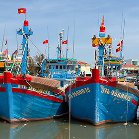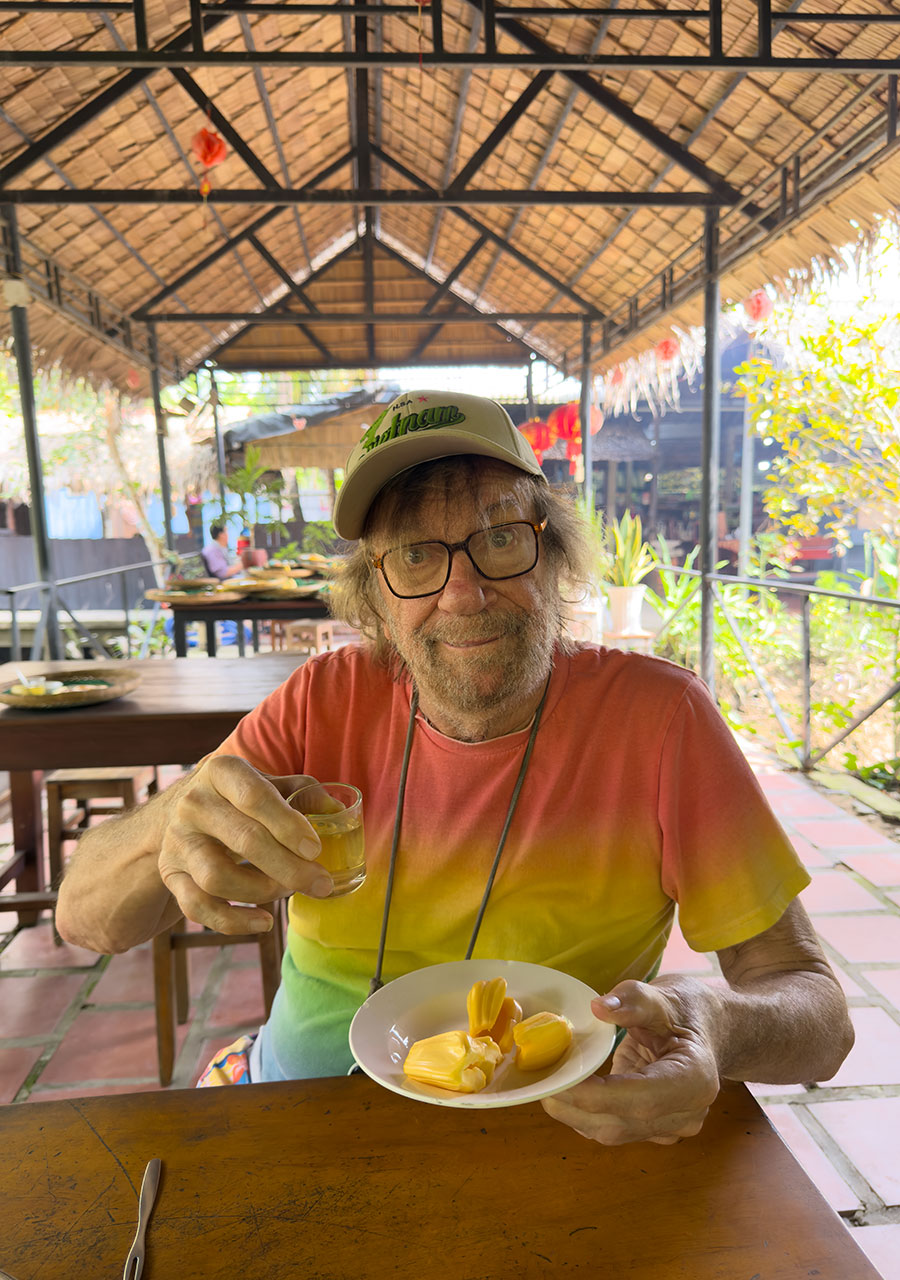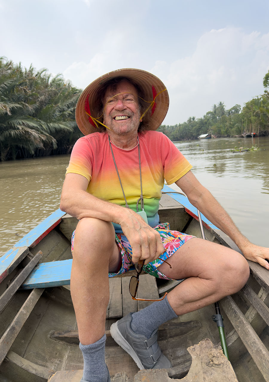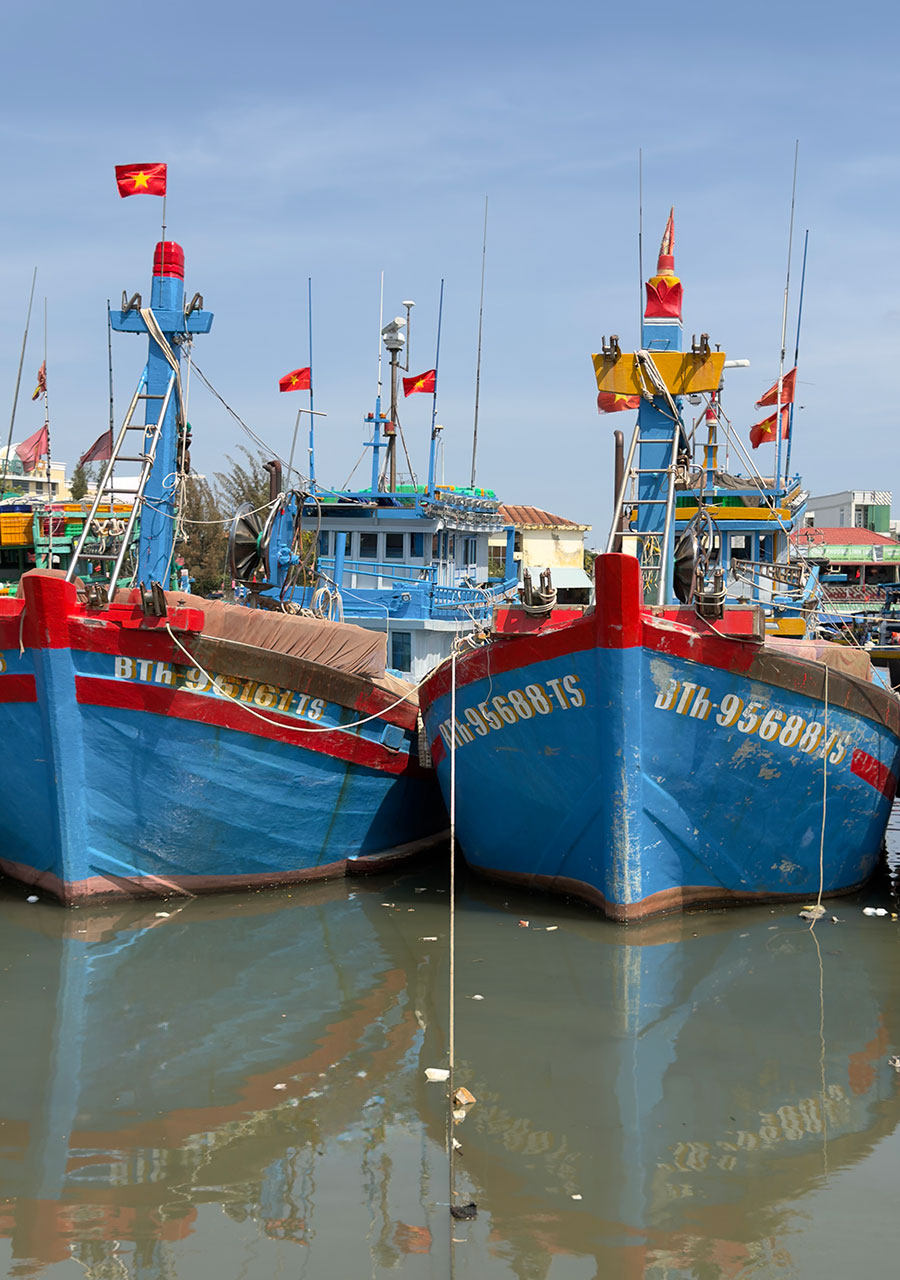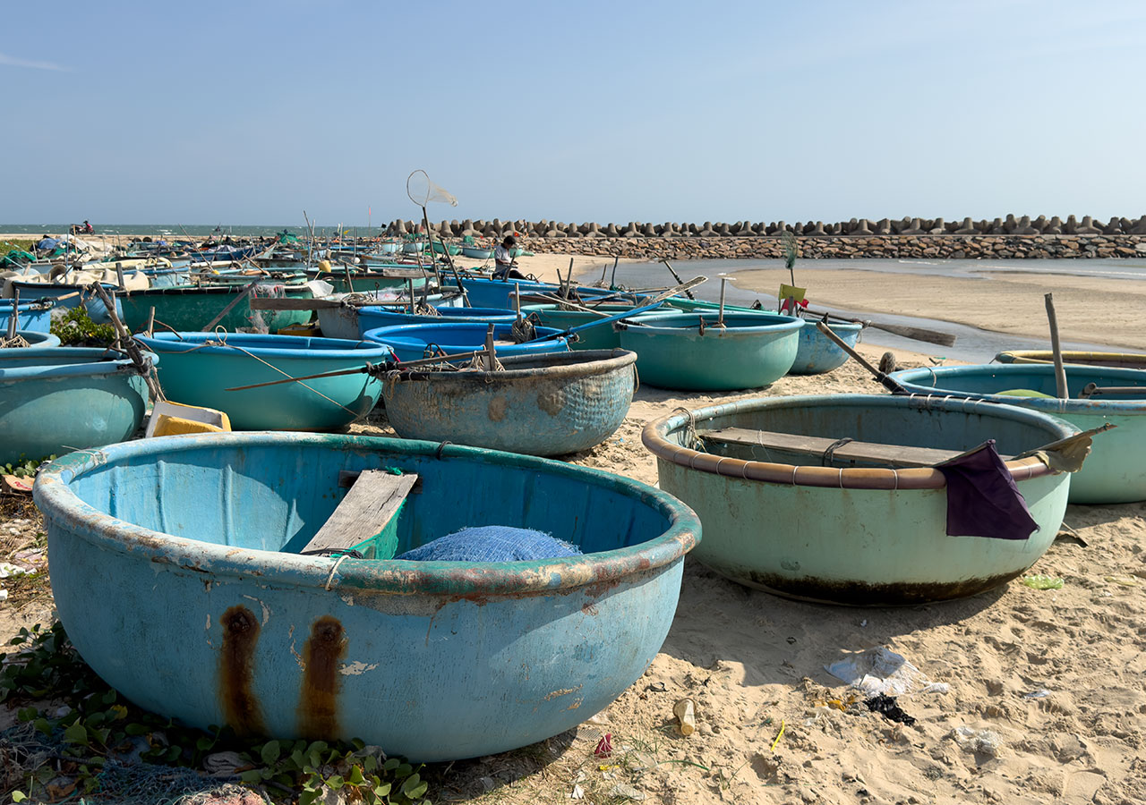 Pochi giorni dopo, volammo a Saigon, con una breve sosta in Cina. Forse ricorderete che durante la mia prima visita in Vietnam, mi ruppi una gamba scendendo da un peschereccio a una barca a ceste. Questa volta nessun problema, e siamo stati felicissimi di tornare nella regione di Phantiet con le sue spiagge, le barche da pesca e le pagode...